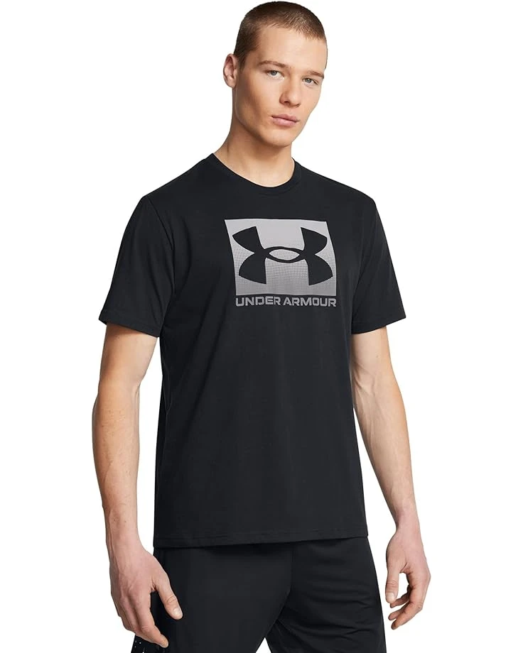 - Exude subtle charm wearing the Under Armour® Boxed Sports Updated Short Sleeve T-Shirt. Designed with a crew neckline and short sleeves, the pull-on tee offers a comfortable, regular fit. The branding graphic at the front and back elevates the style.