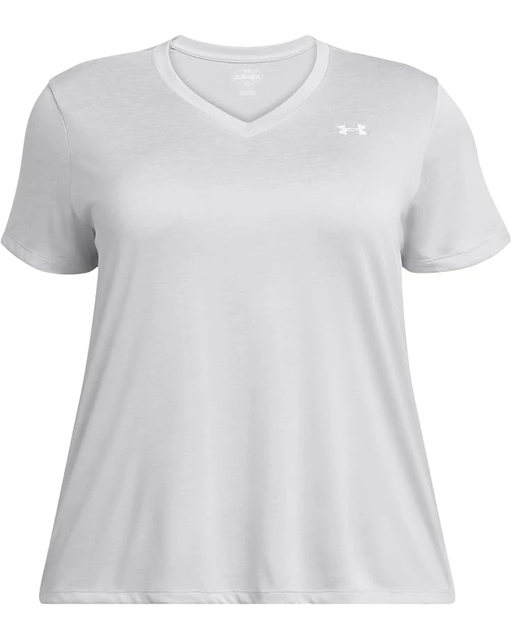 - Sport a casual appeal in the sporty Under Armour® Plus Size Tech Short Sleeve V-Neck Twist tee designed out of All Under Armour® Apparel features a tagless design or tear-away tag with no left-over pieces highlighting a V-neckline and short sleeves with a buttoned closure.