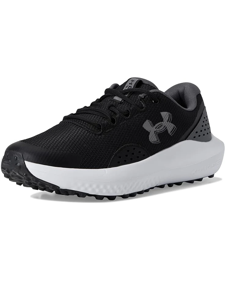 - The Under Armour® Surge Golf Cleats are perfect for golfers looking for both style and functionality on the course. With their lightweight polyester upper and lining, these cleats provide durability and breathability for all-day comfort. The rubber insole offers superior cushioning while the low-top design and round toes give you the stability you need for a successful swing. Under Armour’s mission is simple: to make you better. That means if you set a goal, we’ll help you crush it. We do that with performance innovation and game-changing shoes, shirts, and digital tools that push the limits of what you thought possible.