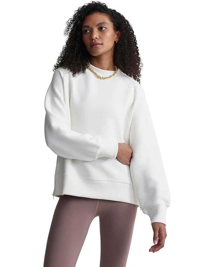 - Look effortless and chic while feeling the utmost comfort wearing Varley® Goulding Sweater. Stylish and functional, the pullover style sweater is an updated take on our bestselling Keller sweat. Crafted from our ribbed Ottoman fabric, this sweatshirt is finished with a tonal sateen trim, infusing every look with effortless elegance. It features a crew neck, long sleeves with ribbed cuffs, and a straight ribbed hem with zippered detail on the sides.