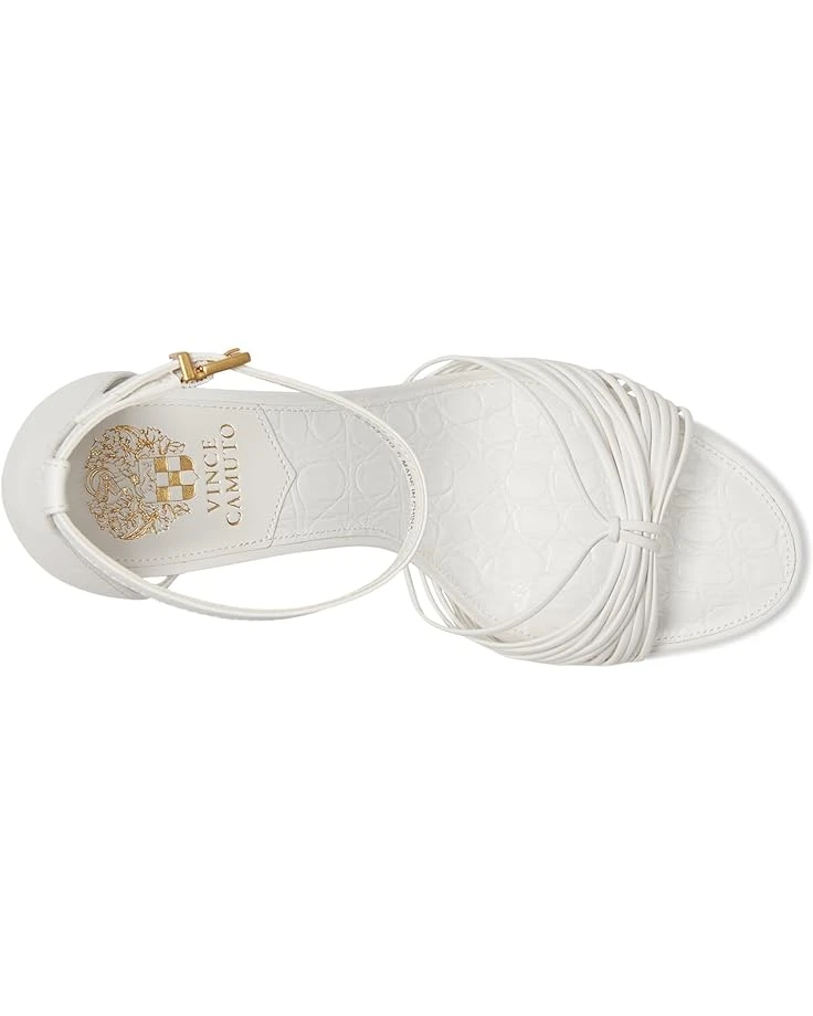 - Add a touch of elegance and flair to your look wearing the Vince Camuto® Blaine Strappy Band High Heel Sandals. This almond toe style features synthetic upper straps and a buckle adjustable ankle strap closure.
