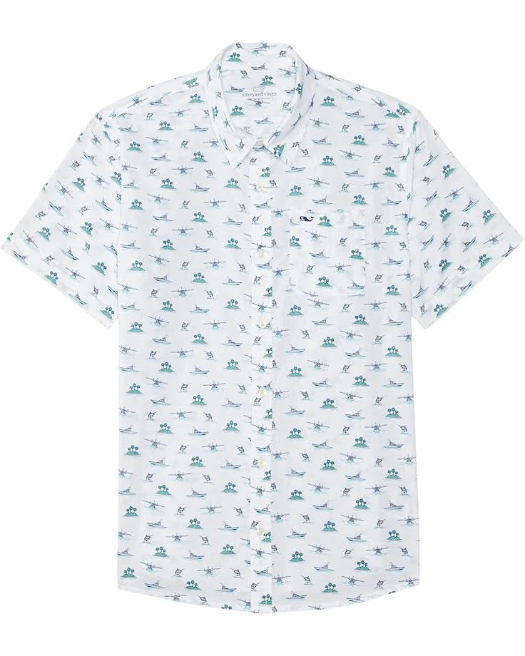 - Crafted in a classic fit with a soft cotton fabric with striking allover print, the Vineyard Vines® Kids Printed Short Sleeve Shirt is a must-have in your wardrobe. The collared shirt features short sleeves, a full front button closure, a patch pocket on the left chest, and a shirttail hem.